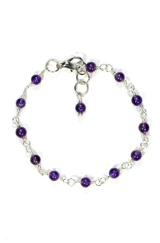 Handmade 4mm Amethyst Link Bracelet for Women