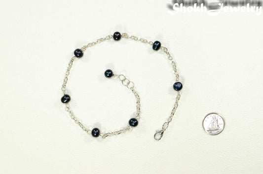 Black Freshwater Pearl and Dainty Chain Choker Necklace
