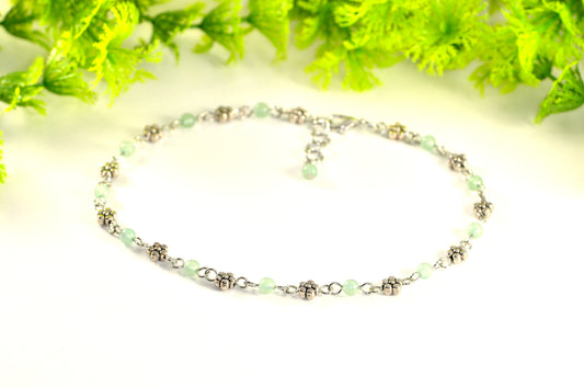 Tibetan Silver Flower and Green Aventurine Choker Necklace