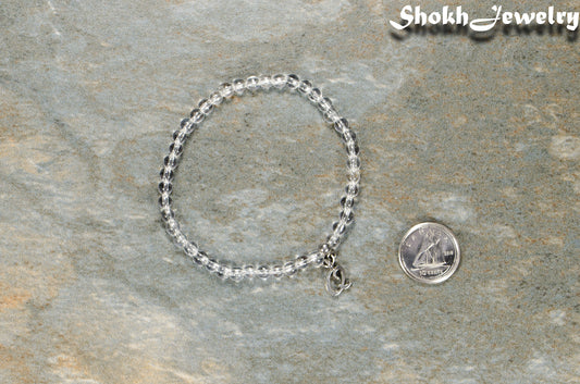 4mm Clear Quartz Bracelet with Initial, April birthstone Jewelry