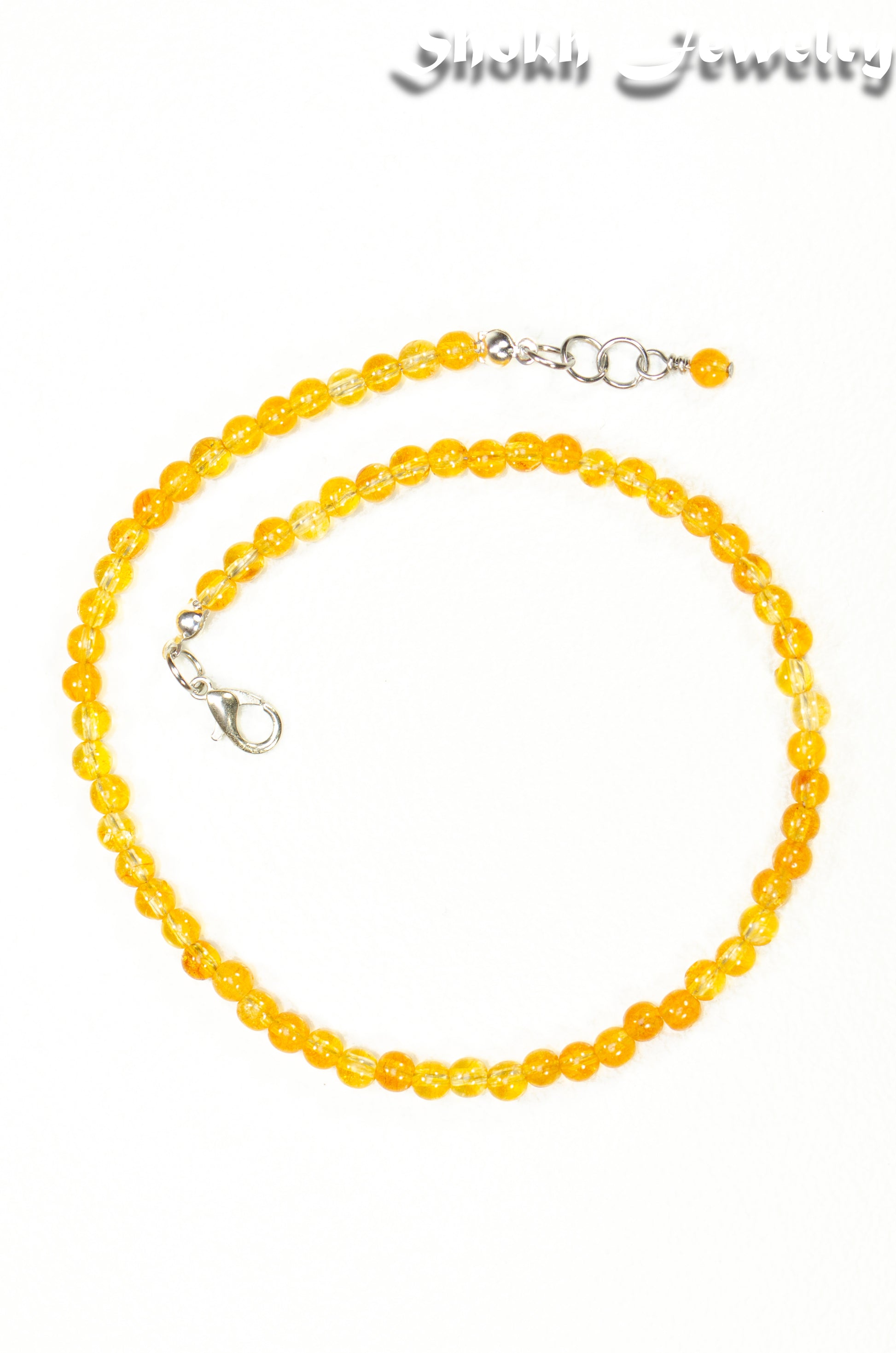 This gorgeous choker necklace is handmade with 4mm natural citrine crystal beads strung on sturdy bead stringing wire, finished with a lobster clasp and 0.5-inch extender chain and a cute little dangle. The clasp is made of metal alloy and the extender chain is made of stainless steel.